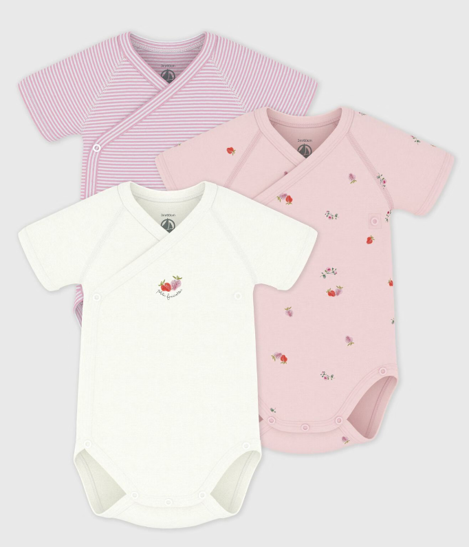 Petit Bateau 3 body's - Roze